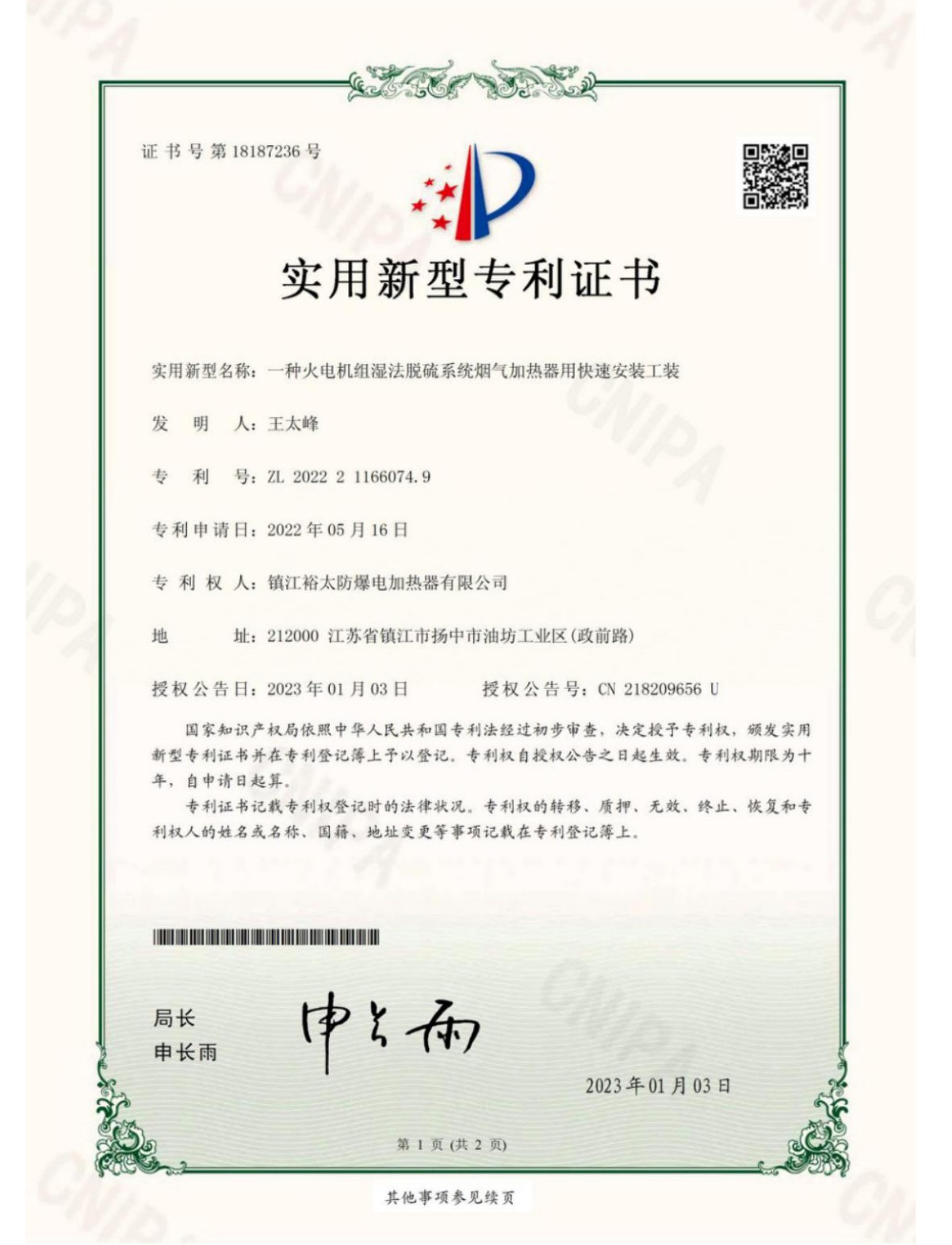 《一种火电机组湿法脱硫系统烟气加热器用快速安装工装》发布于2025年9月13日