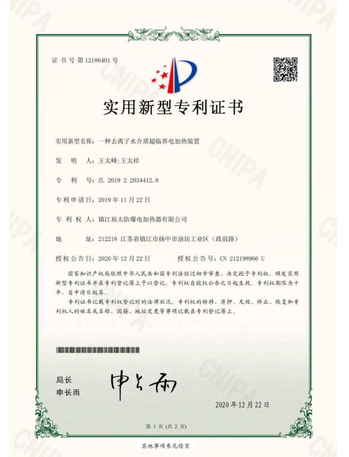 《一种去离子水介质超临界电加热装置》发布于2025年9月13日