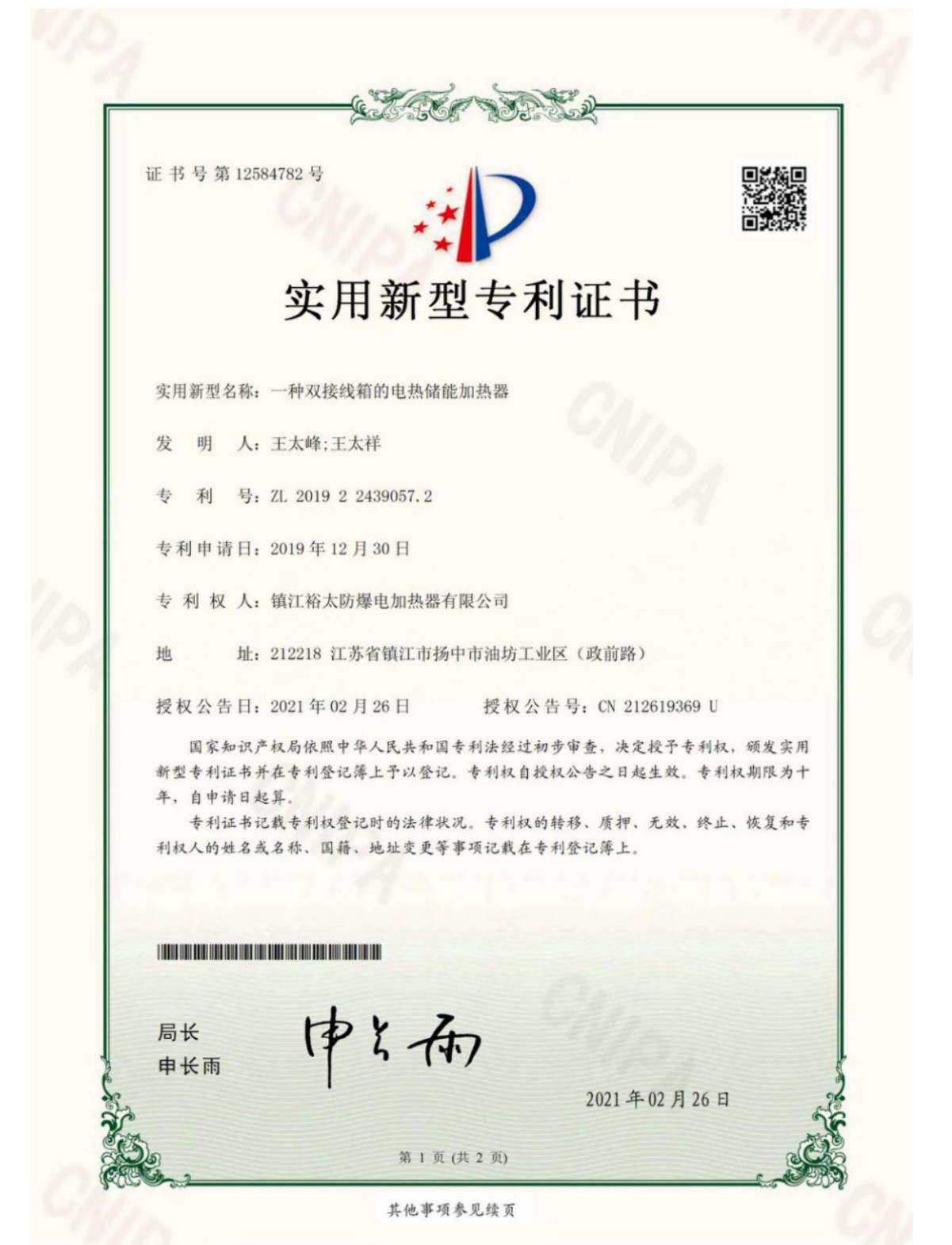 《一种双接线箱的电热储能加热器》发布于2025年9月13日