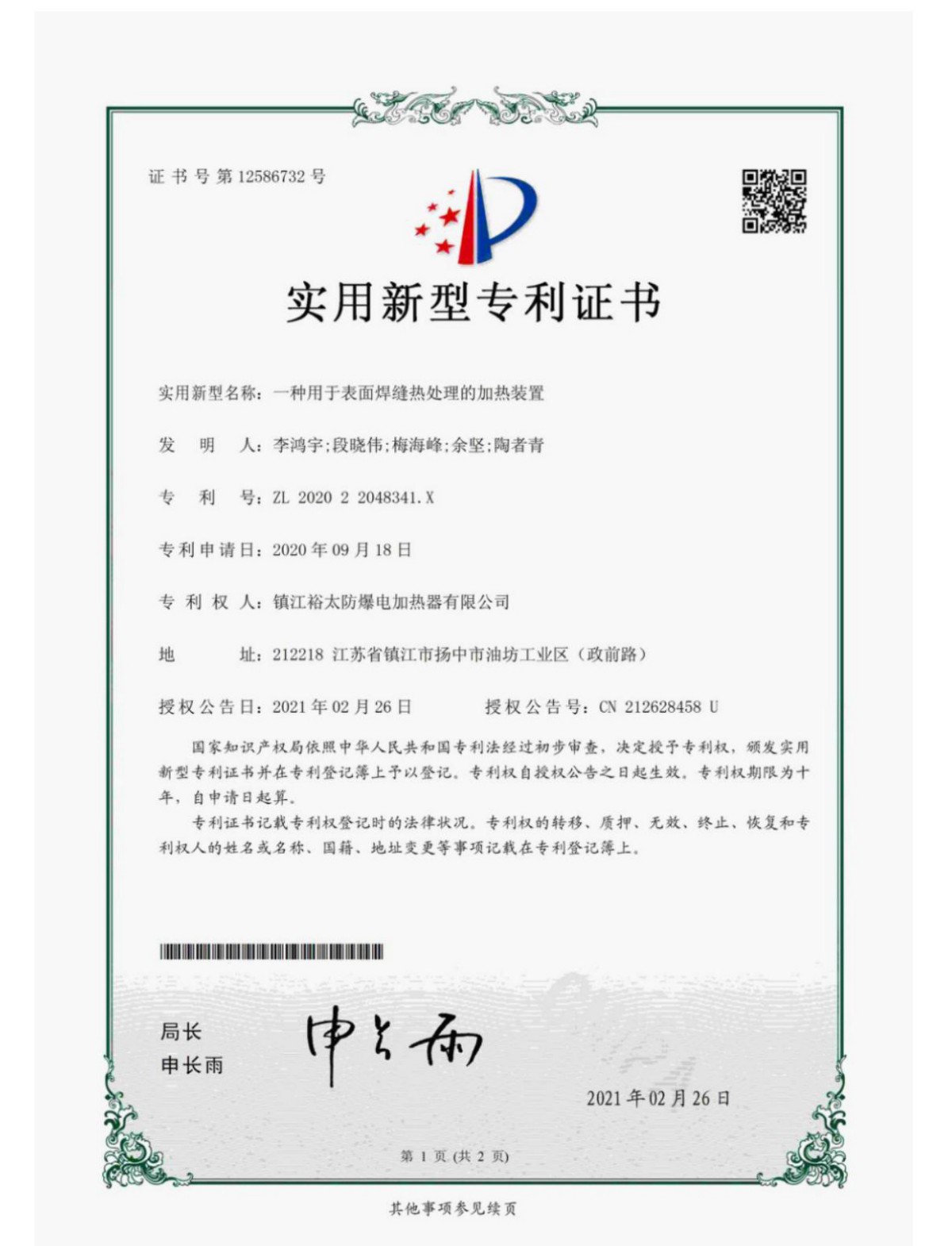 《一种用于表面焊缝热处理的加热装置》发布于2025年9月13日