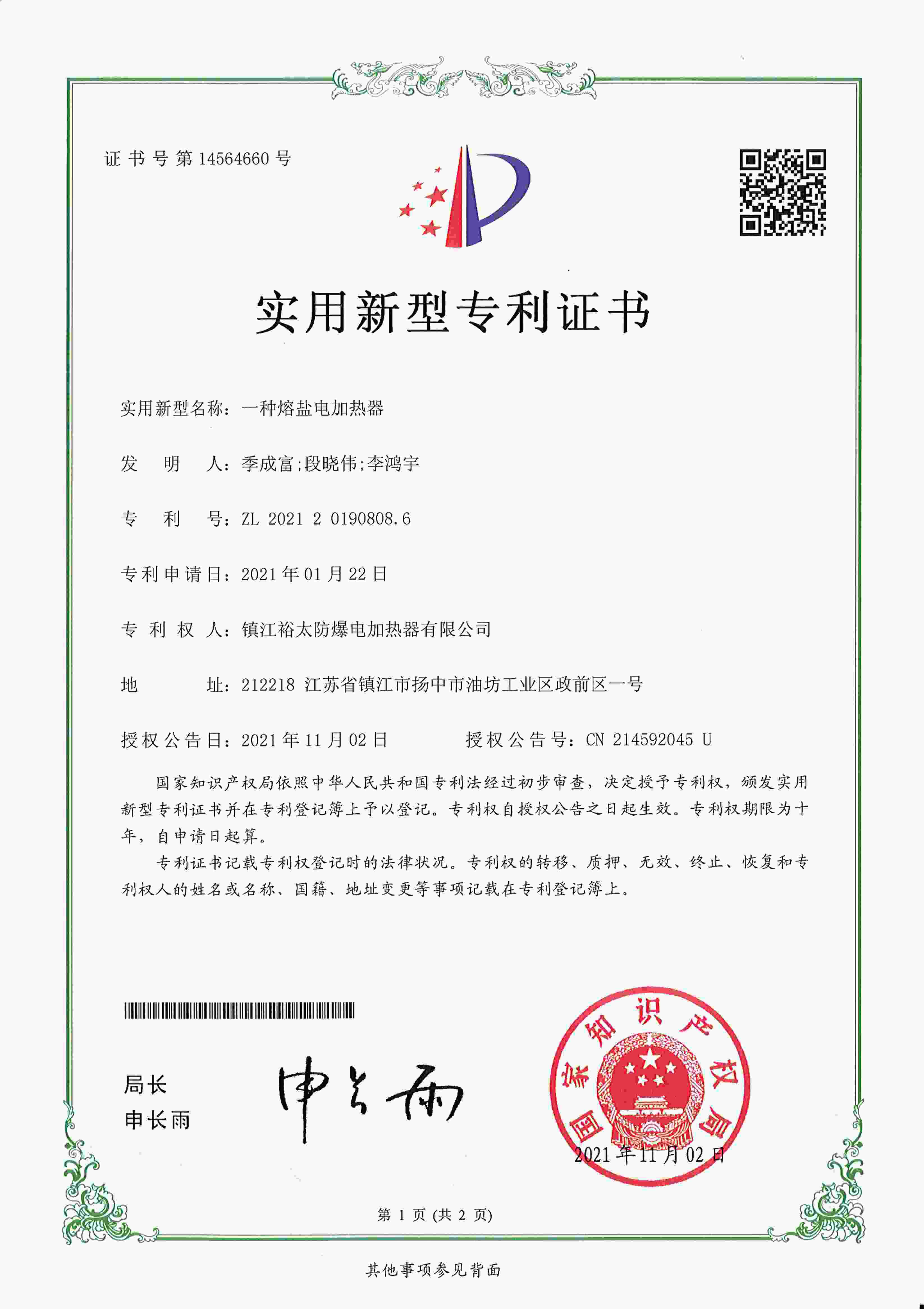 《一种熔盐电加热器》发布于2026年4月16日